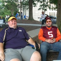 Proving Jackets fans are nothing if not big-hearted, Steve Lavy, ChemE '96, continued a perverse tradition of bringing his old friend, Mike Hayes, a Hokies fan, to the game.